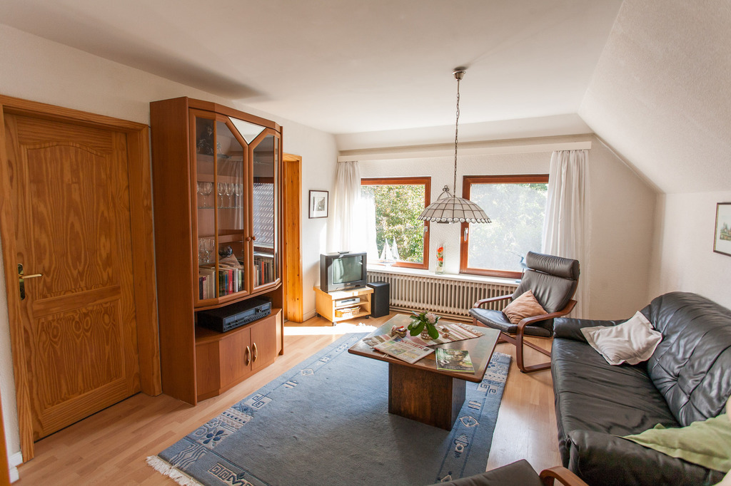 Das Wohnzimmer ist mit Satellitenfarbfernseher und Radio ausgestattet.